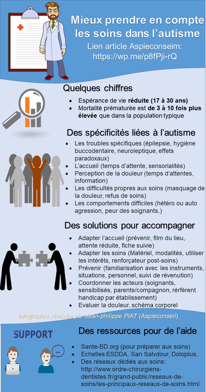Une infographie sur les soins somatiques dans le TSA liée à cet article:Mieux prendre en compte les soins somatiques dans l’autisme