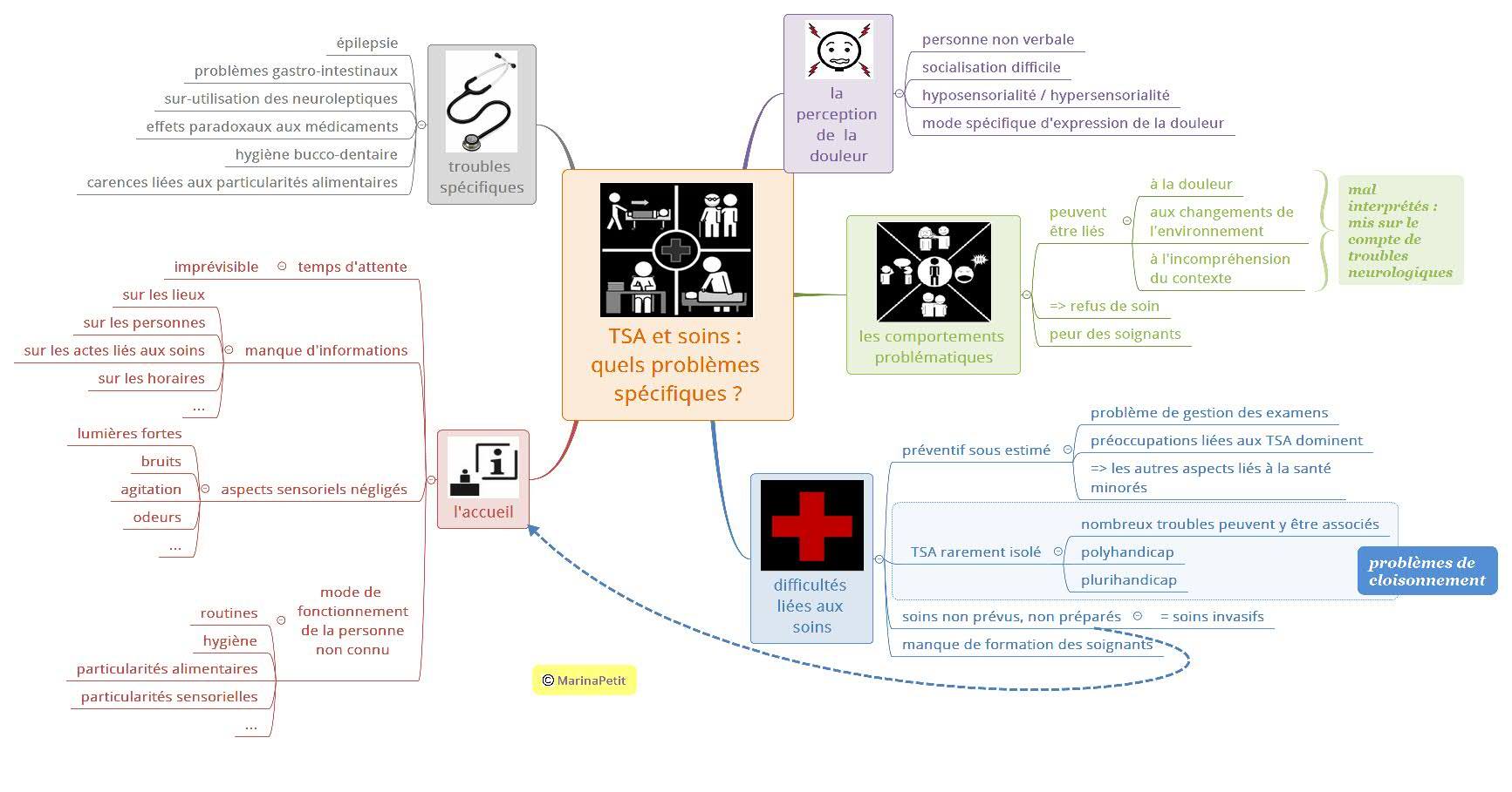 Avec Marina Petit, nous avons décidé de diviser en 5 groupes, les spécificités de l’accès aux soins dans l’autisme :
