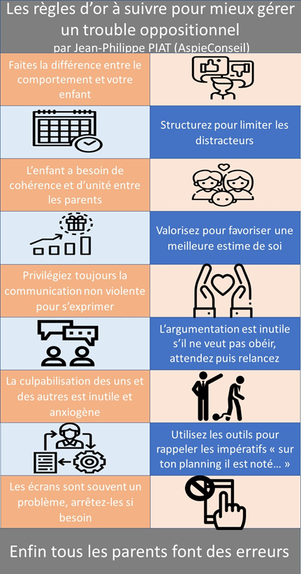 J’ai voulu créer une trame globale pour aider les parents mais aussi personnes concernées à mieux gérer le trouble oppositionnel avec provocation. Bien souvent la souffrance engendrée par les nombreuses crises empêche de prendre du recul sur la situation. Tout d’abord un fichier PDF qui à mon avis est le format le meilleur :